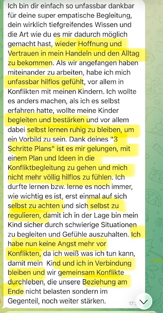Und so bin ich losgegangen, habe mich immer und immer weitergebildet, in verschiedensten Bereichen: Von Psychosomatik über ADHS, Familienberatung, kindliche Entwicklungsphasen und Achtsamkeitstraining, traumasensibles Yoga (…) bis ich endlich mein ganz eigenes System zusammengetragen hatte.